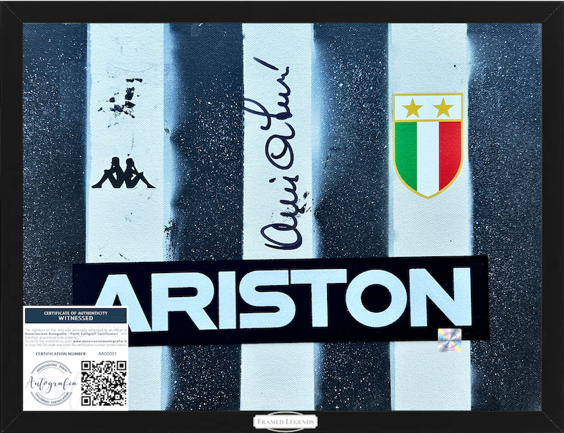 Firme Leggendarie:  Ogni tela è firmata da leggende del calcio che hanno fatto la storia, ed ogni autografo è una testimonianza tangibile della grandezza di questi campioni.