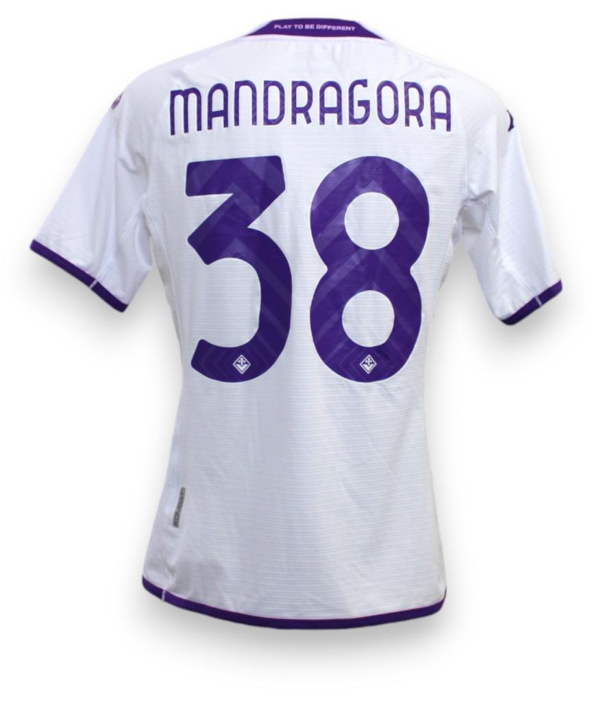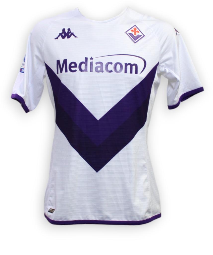 Maglia Player Issued versione Trasferta della Fiorentina preparata per il calciatore Rolando Mandragora per la stagione 2022-2023 per una partita della Serie A.