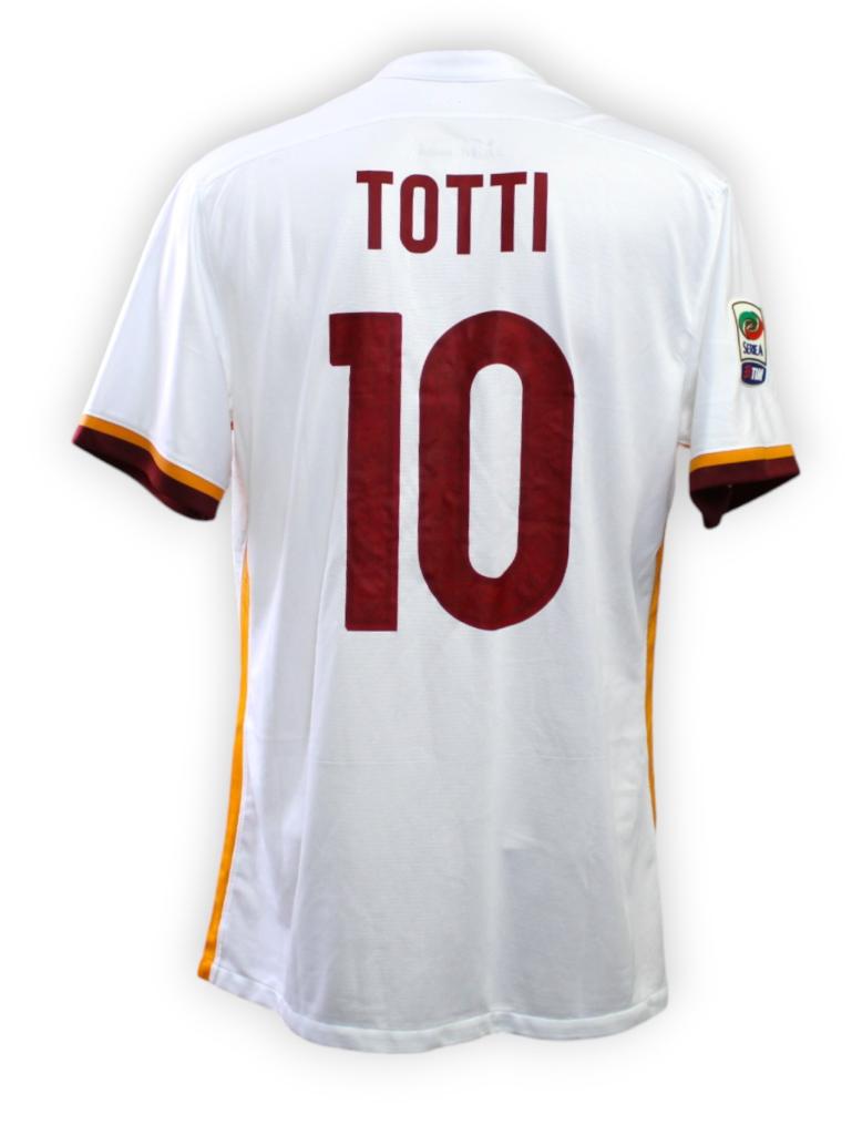 Maglia Player Issued versione Trasferta della Roma preparata per il calciatore Francesco Totti per la stagione 2015-2016 per una partita di Serie A.