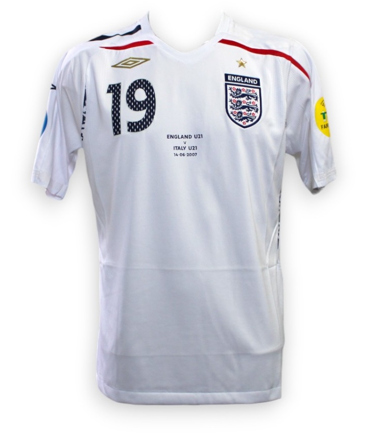 La maglia, prodotta dallo sponsor tecnico Umbro, riporta la patch del Fair Play Uefa e la patch del campionato Europeo Under 21, oltre alla personalizzazione della partita giocata il 14 agosto 2007.