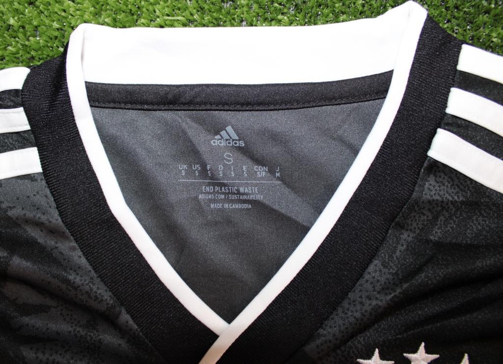 La maglia da trasferta Adidas Juventus 22-23 presenta una combinazione di colori che si adatta perfettamente al club. Combina il nero con il bianco e l'antracite. La base scura è abbinata a loghi bianchi e alle 3 strisce sulle spalle.