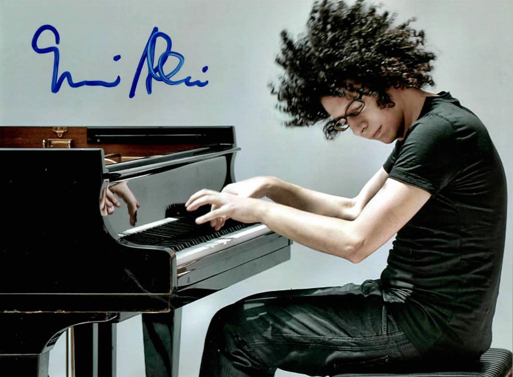 Fotografia a colori con firma autografa di Giovanni Allevi, pianista e compositore.