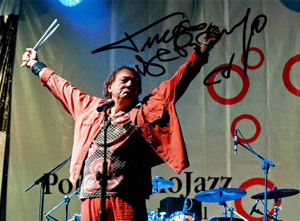 Fotografia a colori con firma autografa di Tullio De Piscopo, batterista e percussionista.