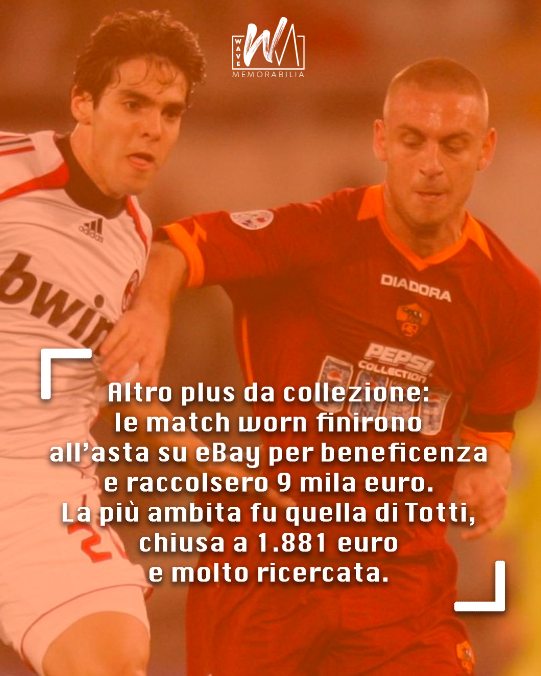 Il valore collezionistico di queste maglie è ulteriormente accresciuto dalla loro successiva destinazione. Le versioni indossate in partita, le cosiddette “match worn”, furono messe all’asta su eBay per beneficenza. L’iniziativa raccolse circa 9.000 euro, dimostrando già all’epoca un forte interesse da parte degli appassionati. Tra tutte, la più ambita fu quella appartenuta a Francesco Totti, capitano e simbolo della Roma, che raggiunse la cifra di 1.881 euro. Un dato significativo, che sottolinea non solo l’importanza del giocatore, ma anche il fascino esercitato da un oggetto così particolare.