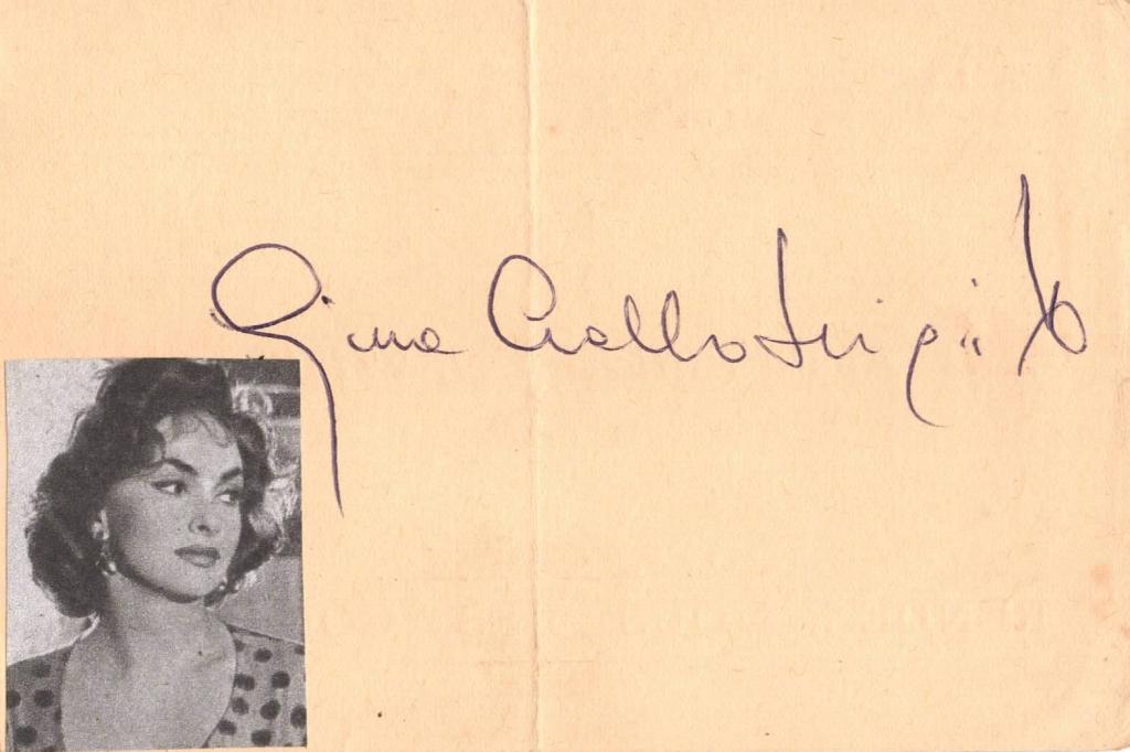 Autografo di Gina Lollobrigida celebre attrice italiana.