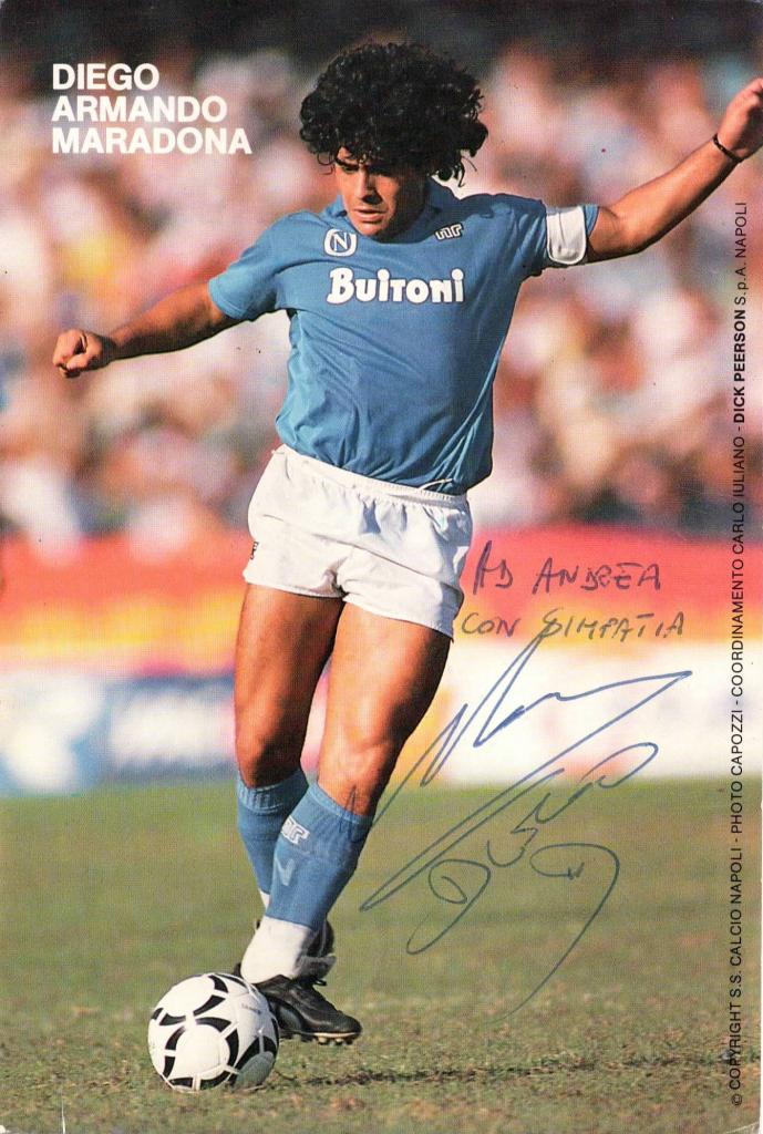 Autografo di Diego Armando Maradona illustre calciatore, allenatore di calcio e dirigente sportivo argentino, di ruolo centrocampista offensivo, campione del mondo nel 1986 e vicecampione del mondo nel 1990 con la nazionale argentina.