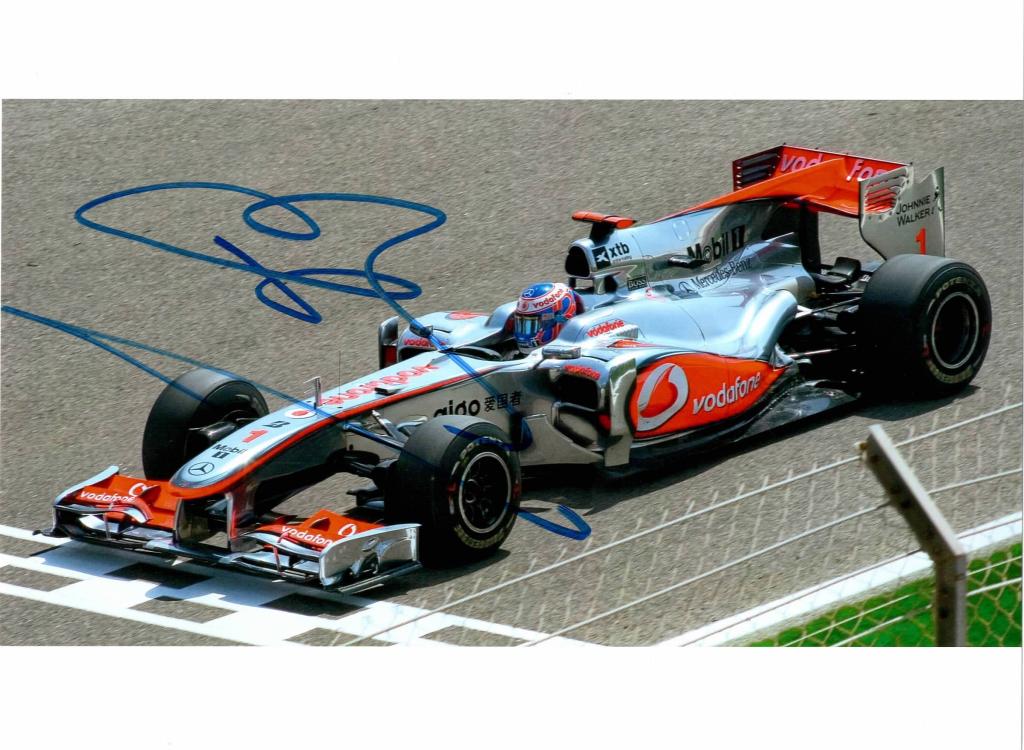 Autografo di Jenson Button pilota automobilistico britannico, campione del mondo di Formula 1 nel 2009 e campione Super GT nel 2018.