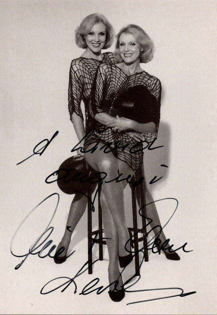Cartolina con dedica interamente autografa e firmata delle gemelle Alice ed Ellen Kessler.