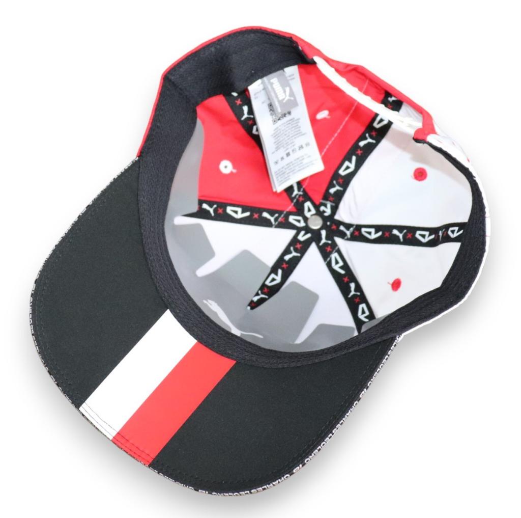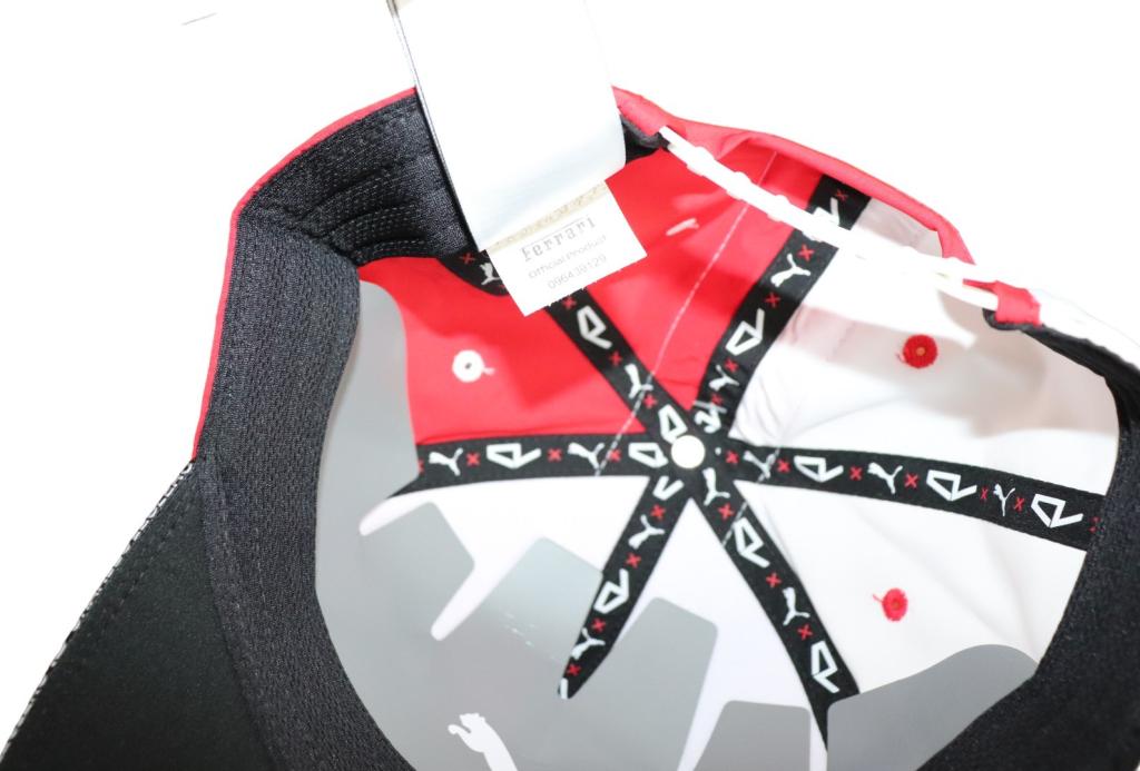 Il cappellino riporta sulla tesa il numero 16 ricamato e lo stemma Ferrari in rilievo; presente all'interno le etichette di Puma e la numerazione del prodotto ufficiale Ferrari.