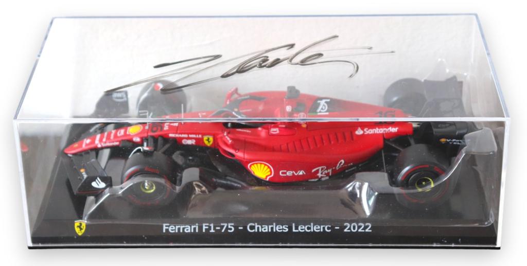 Autografo di Charles Leclerc Modellino Ferrari F1 - 75 2022 BOX
