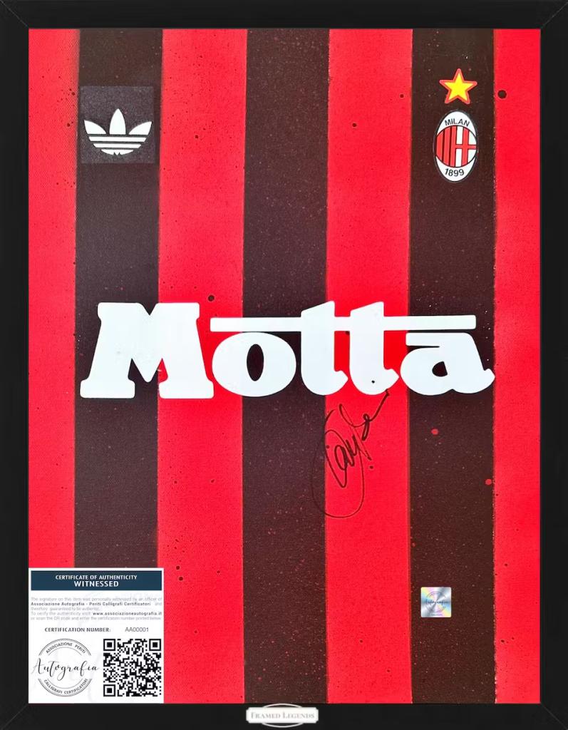 Firme Leggendarie:  Ogni tela è firmata da leggende del calcio che hanno fatto la storia, ed ogni autografo è una testimonianza tangibile della grandezza di questi campioni.