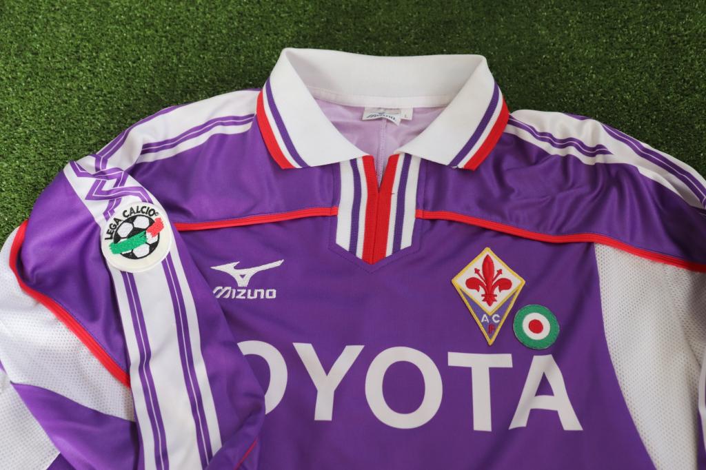 La divisa a maniche lunghe riporta sulla manica destra la patch della Lega Calcio, oltre alla patch della vittoria della Coppa Italia, ultimo trofeo vinto dalla Fiorentina.