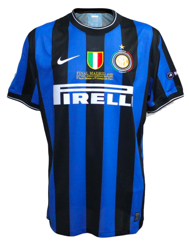 Riporta inoltre, in mostra sul petto, la grafica Champions League Madrid Final 2010.