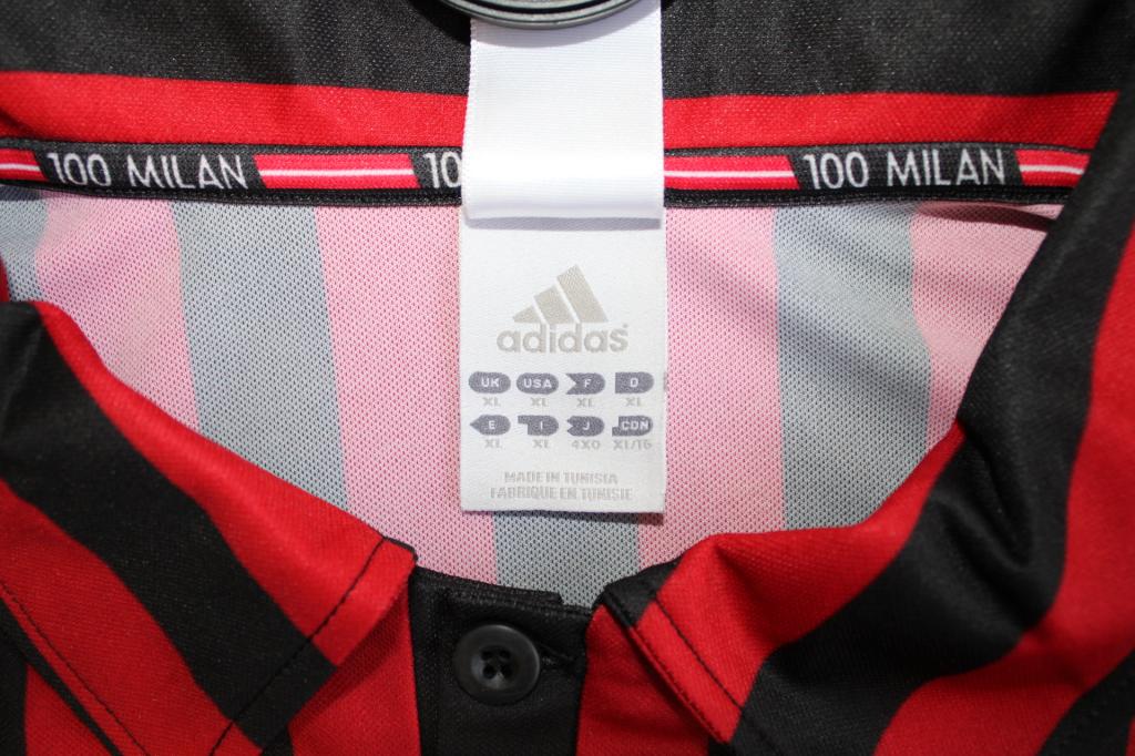 Celebrazione del centenario del club nel 1999. La maglia Home dell'AC Milan 1999-2000 presenta un look ispirato alla prima maglia del club nel 1899.