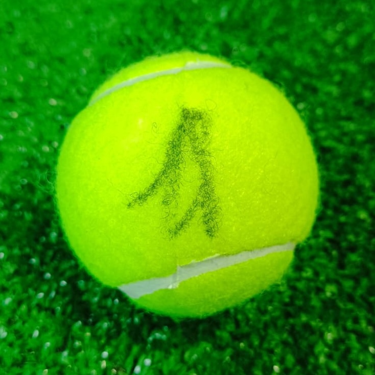 Pallina da tennis con autografo di Jannik Sinner celebre tennista italiano. Con la nazionale italiana ha conquistato la Coppa Davis nel 2023 e nel 2024.