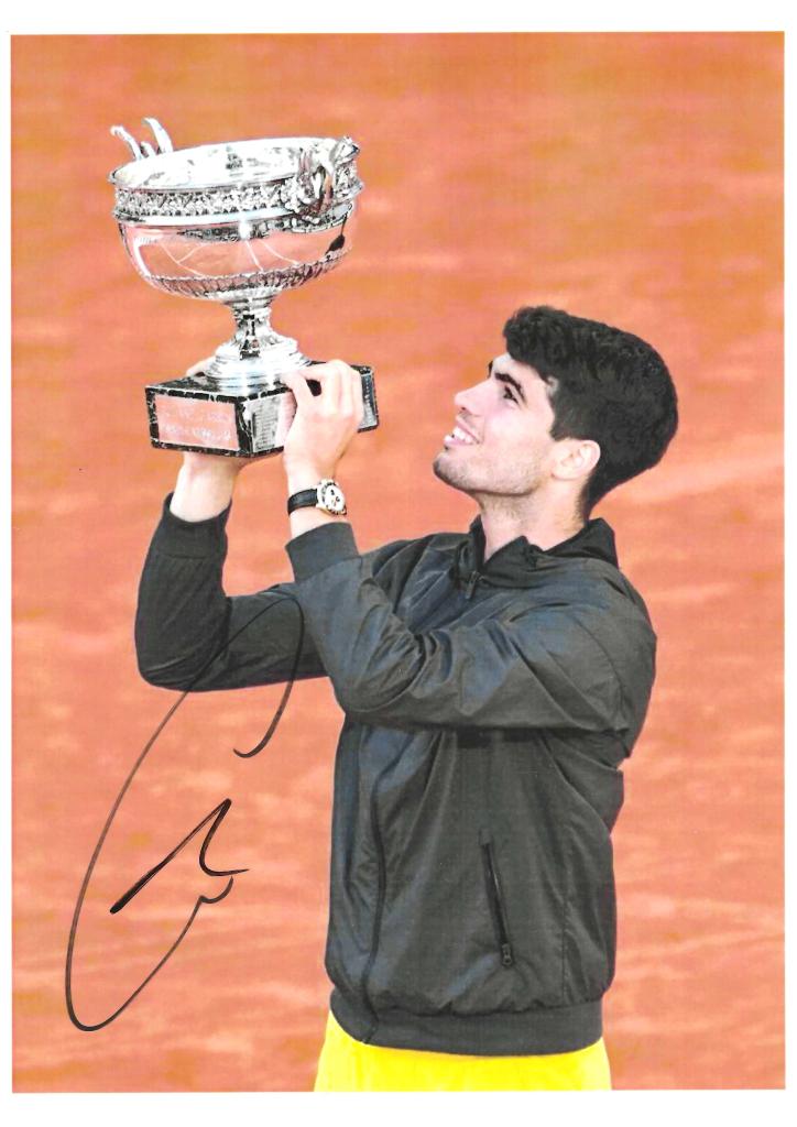 Autografo di Carlos Alcaraz Fotografia Trofeo Roland Garros 2024