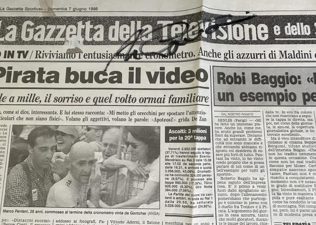 Autografo di Marco Pantani Gazzetta dello Sport Vittoria Giro