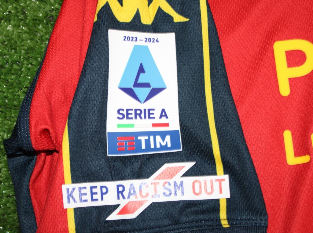 La divisa riporta le patch della Serie A Tim e Keep Racism Out sulla manica destra.