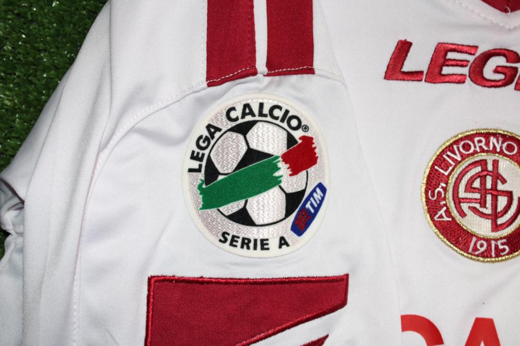 Maglia calcio player issued Livorno Grandoni Away 2007-2008 Serie A Legea Carige con patch Lega Calcio Serie A TIM sulla manica destra.