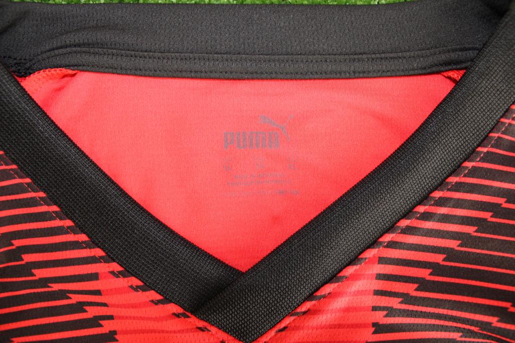 Prodotta da Puma, presenta l’iconico design rossonero reinterpretato con bande nere e rosse dinamiche con effetto grafico a fulmini. Il colletto e i bordi manica sono rifiniti in nero. Sul petto sono presenti lo stemma del Milan con stella dorata celebrativa dello Scudetto e il logo Puma. Lo sponsor Emirates Fly Better è serigrafato sul davanti, mentre il retro riporta il nome “IBRAHIMOVIC" e il numero 11, accompagnato dalla firma autografa dell’attaccante svedese. Patch ufficiale Serie A TIM stagione 2023-2024 applicata sulla manica. Una maglia imperdibile per collezionisti e tifosi rossoneri.