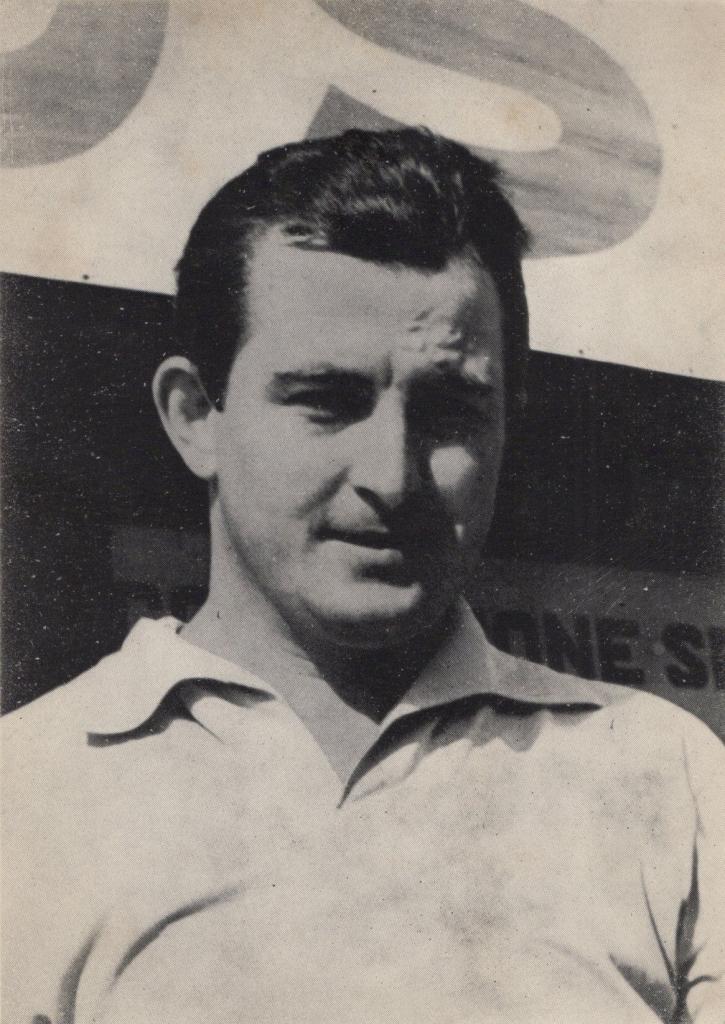 La firma è accompagnata dalla dedica “Grazie e saluti”, tracciata con penna a inchiostro blu e perfettamente leggibile. Sul fronte, la foto in bianco e nero di Scarfiotti ritratto in tenuta da corsa.