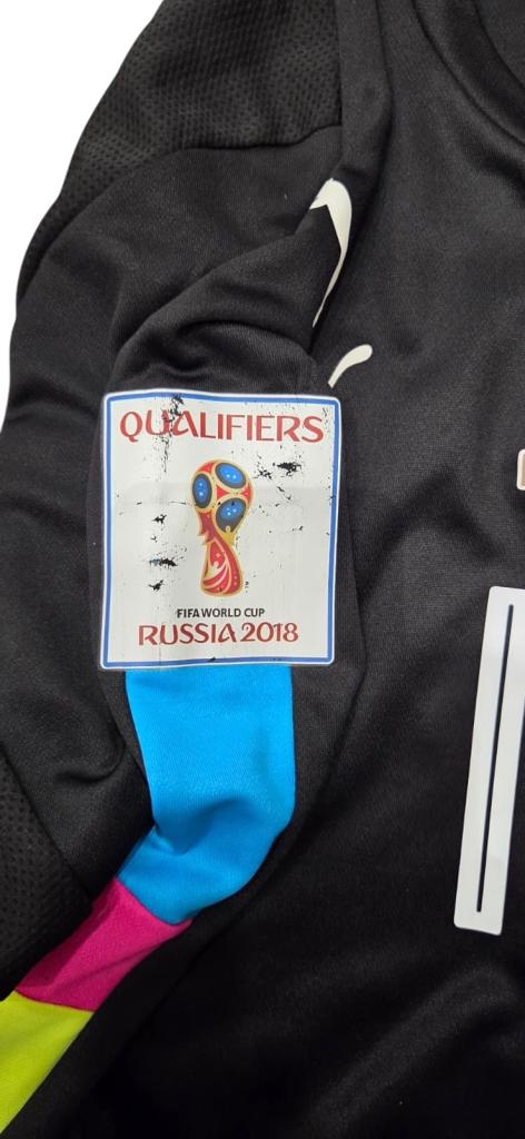 Sulla manica è presente la patch “UEFA Qualifiers Russia 2018”. La maglia trasmette un forte valore simbolico per via della personalizzazione Donnarumma e della specifica partita di qualificazione.