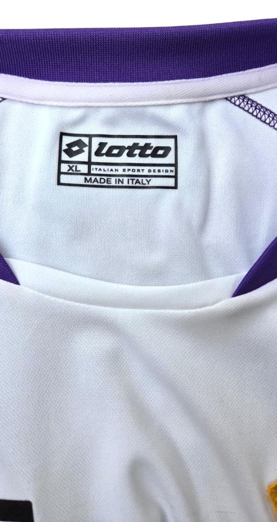 Sul petto si nota lo stemma viola del club e il logo tecnico Lotto; non si osserva uno sponsor commerciale frontale (tipico delle divise portiere storiche).