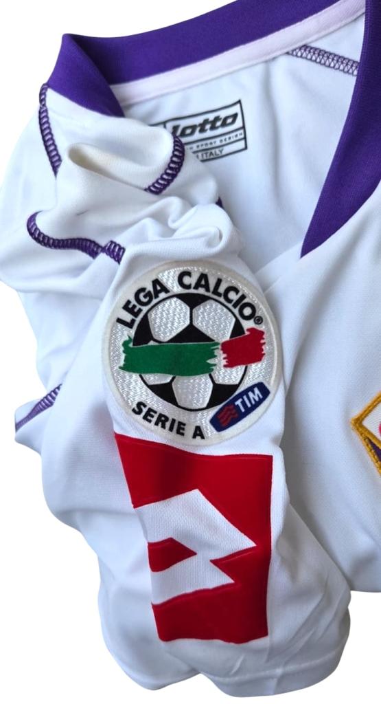 Maglia portiere Fiorentina Lotto bianca con dettagli viola, player issued personalizzazione Frey #1.