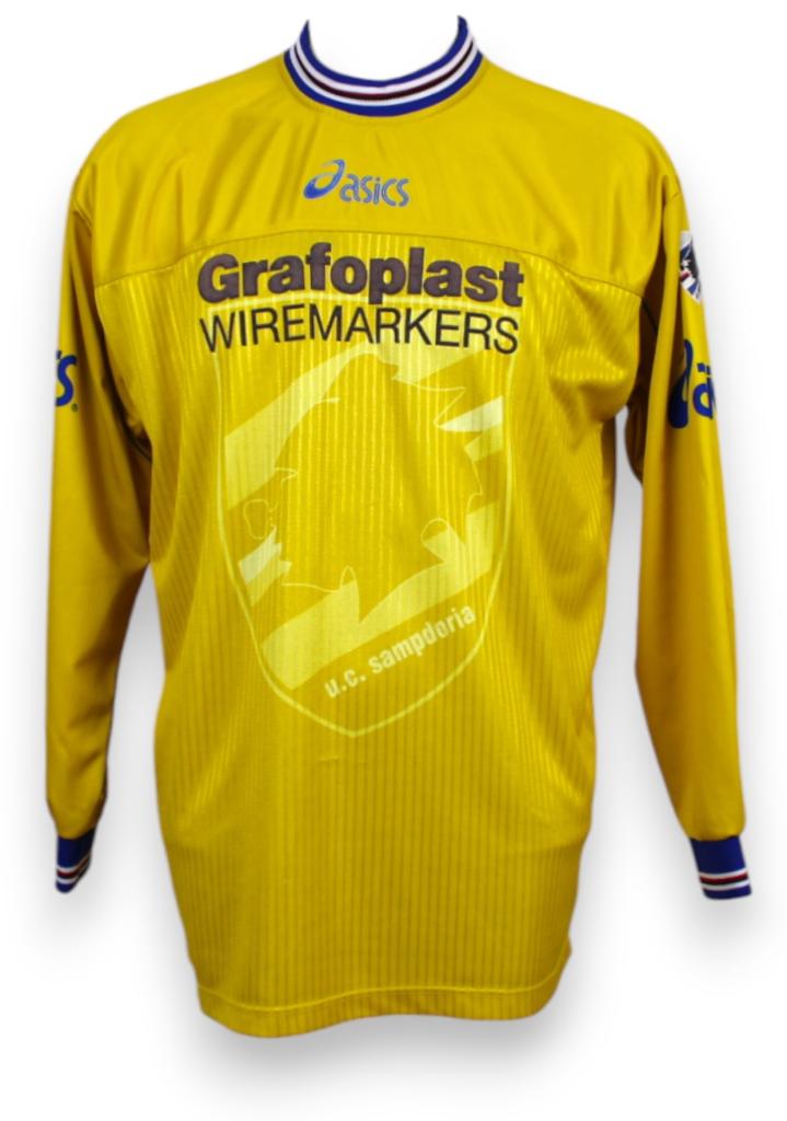 Maglia Sampdoria training realizzata da Asics, gialla, colletto con colori societari, versione manica lunga.