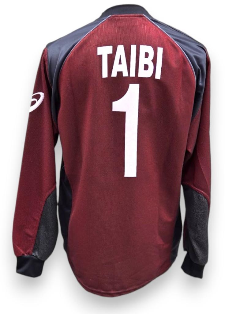 Il retro mostra la personalizzazione ufficiale “TAIBI” e il numero 1 in stampa bianca, associati al portiere simbolo della squadra in quel periodo. Il tessuto tecnico Asics dona leggerezza e resistenza, mentre i rinforzi sulle maniche garantiscono protezione per il ruolo. Una maglia iconica del portiere nerazzurro, testimone di un’epoca e delle battaglie dell’Atalanta nei primi anni Duemila.