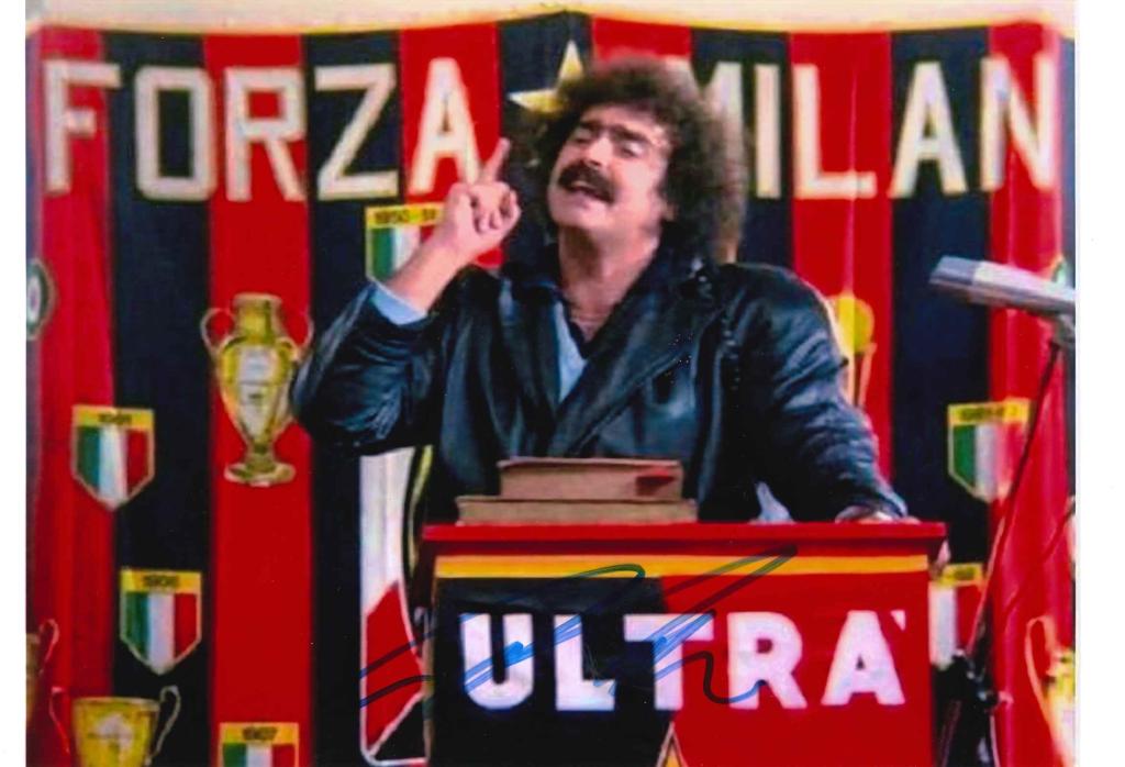Autografo di Diego Abatantuono su fotografia tratta dal film Eccezzziunale… veramente, pellicola che ne ha decretato il successo.