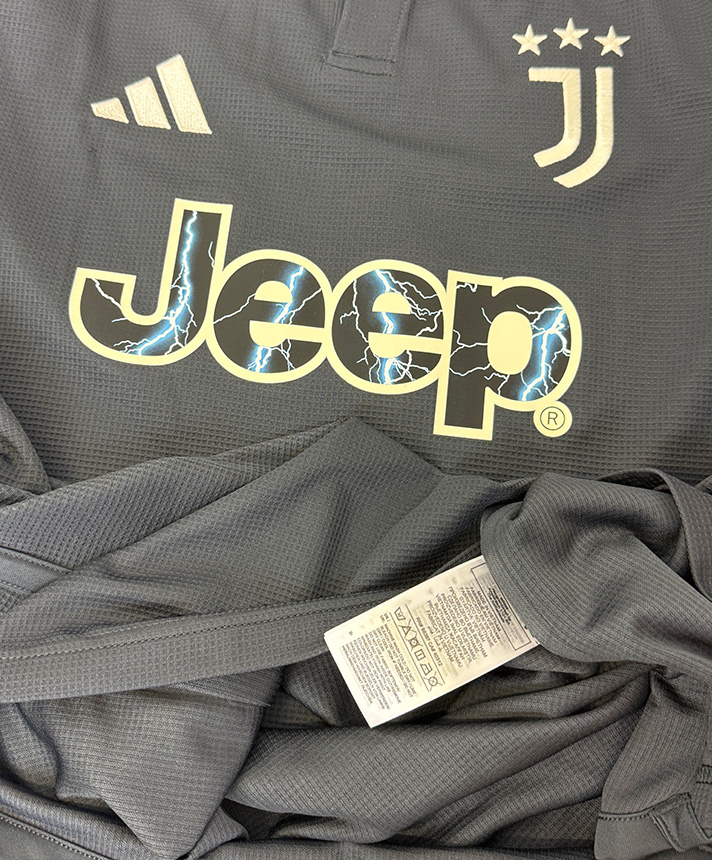 Autografo di Vlahovic su maglia Third della Juventus stagione 2023-2024, versione Store con patch ufficiale di Serie A.