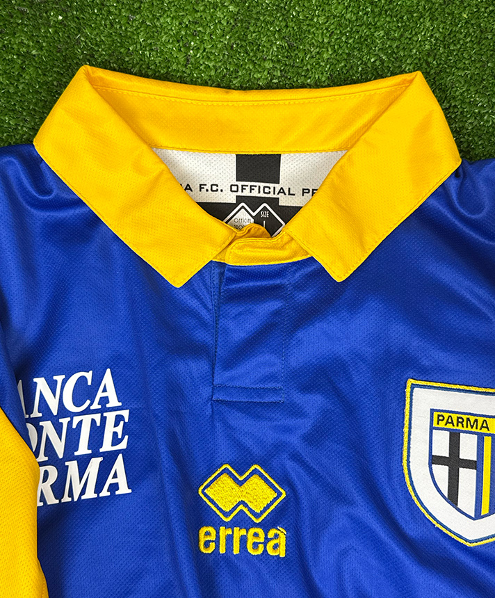 Probabilmente una delle divise più iconiche di tutta la Serie A, quella del Parma è una maglia tra le più richieste e collezionate di tutti gli anni ’90.