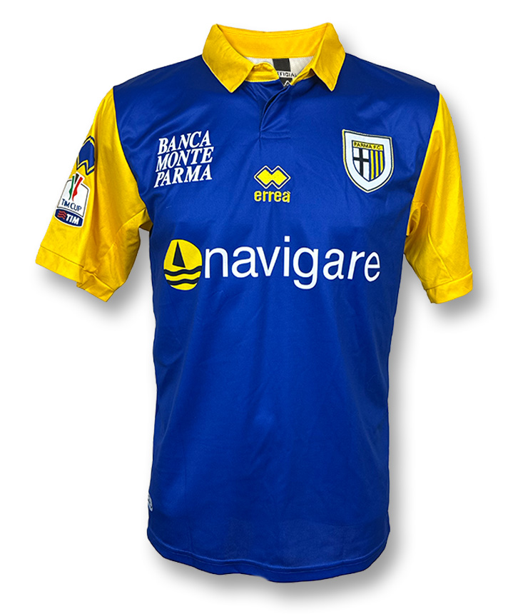Maglia Away del Parma FC personalizzata Gobbi della stagione 2010-2011, versione Player Issued con patch Tim Cup.