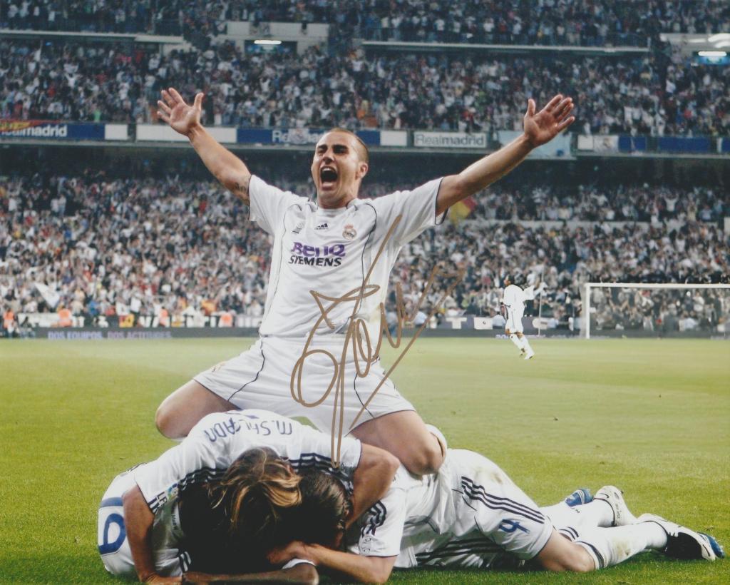 Autografo di Fabio Cannavaro su fotografia con il Real Madrid dopo il Mondiale 2006, anno in cui vinse anche il Pallone d’Oro.