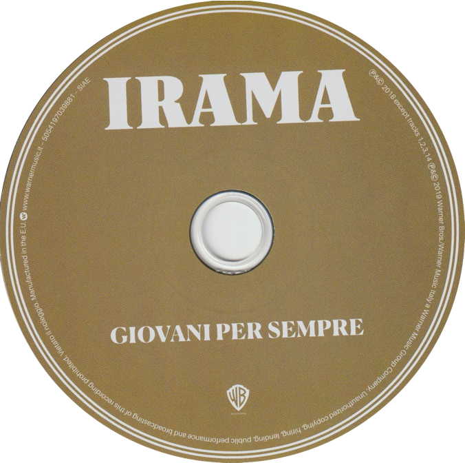 La copertina presenta un primo piano dell’artista con il titolo “IRAMA” nella parte superiore e il nome dell’album “Giovani per sempre” riportato nella parte inferiore. Nel CD sono inoltre presenti due firme stampate in bianco accompagnate dalla dicitura “a chi ci sarà sempre”. L’autografo di Irama si differenzia in quanto è realizzato in pennarello nero ed è presente sul fronte della copertina in posizione centrale, sovrapponendosi all’immagine dell’artista.