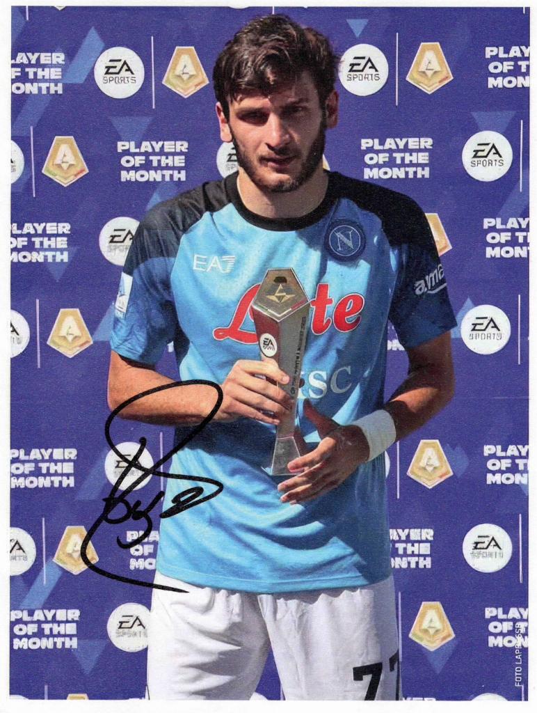 Autografo di Khvicha Kvaratskhelia Fotografia Forex Napoli Premio Mese