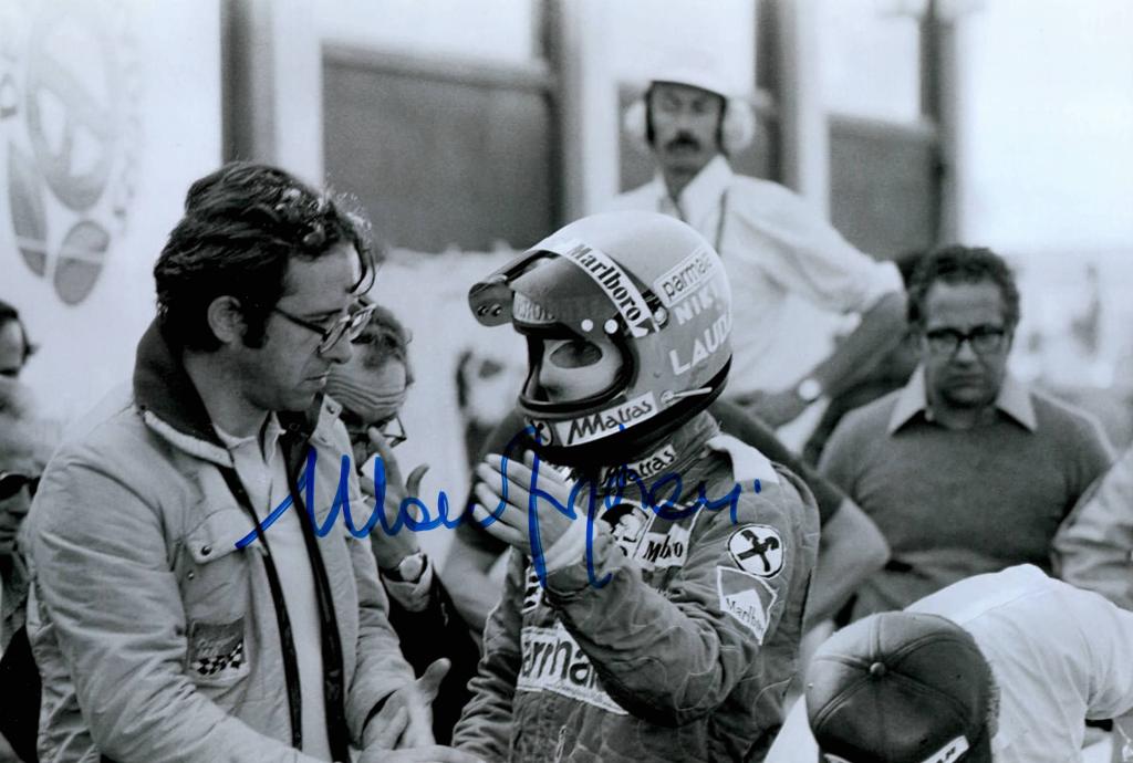 La fotografia lo ritrae mentre parla con Niki Lauda.